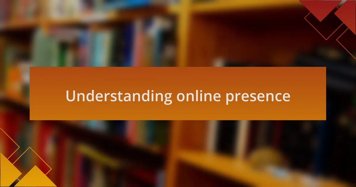 Understanding online presence goes beyond simply having a website or social media accounts; it’s the totality of how you present yourself or your brand in the digital landscape. I remember launching my first blog; it felt like shouting into the void, wondering if anyone would listen. It’s a mix of strategy and authenticity—how you engage your audience shapes their perception of you.